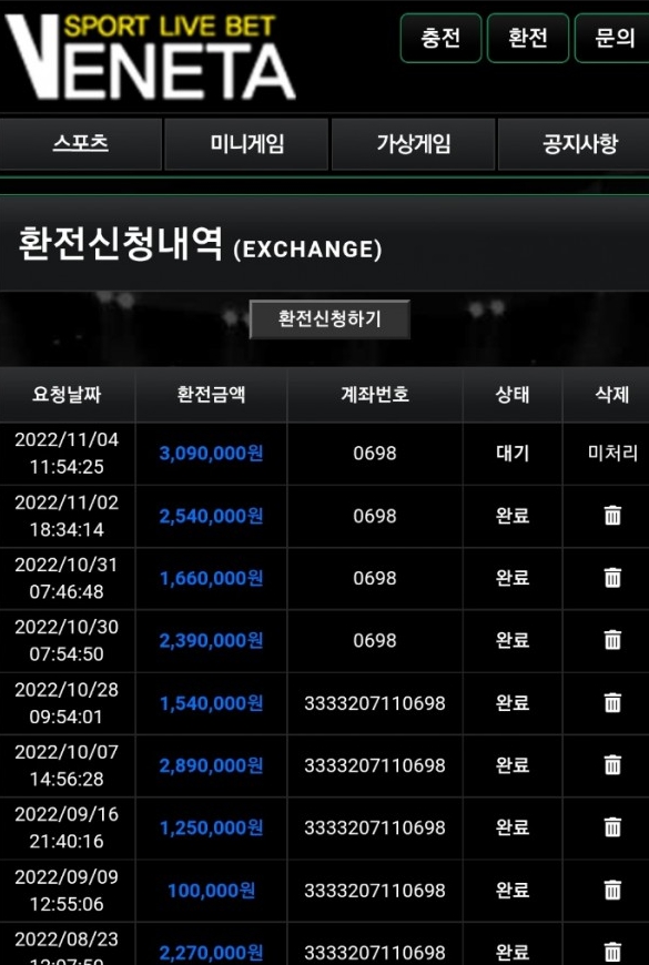 베네타 먹튀당했습니다 309만원 이용중지 작성자 정보 칼리번g 작성 2,028 조회 작성일 2022.11.05 02:00 본문 사이트명 사이트명 : 베네타 사이트주소 사이트주소 : ve-800.com 베네타 며칠 전까지 환전 잘 받으면서 이용하고 있었는데요. 새벽 경기를 걸어두고 당첨된거 확인 후 환전 요청을 누르니깐 아이디 로그인이 안되게끔 막아두었네요 베네타 ve-800.com 먹튀 확정입니 관련자료 로그인한 회원만 댓글 등록이 가능합니다. 컨텐츠 정보 목록
