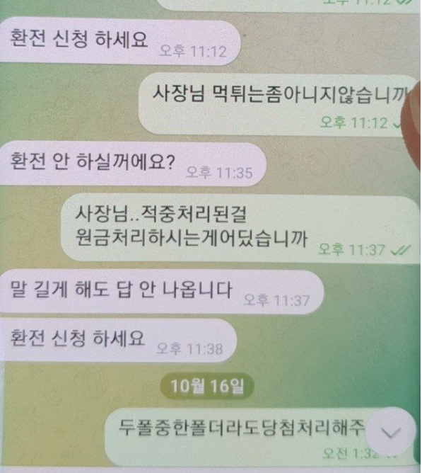 위너에서 먹튀 당했습니다 먹튀사이트에요 작성자 정보 catchfashion 작성 2,002 조회 작성일 2022.10.16 16:55 본문 사이트명 사이트명 : 위너 사이트주소 사이트주소 : wn-121.com 전반전 끝나고 당첨된까 저러네요 낙첨된건 놔두고 원금만주고 당첨금은 먹튀당했습니다 위너 wn-121.com 관련자료 로그인한 회원만 댓글 등록이 가능합니다. 컨텐츠 정보 목록
