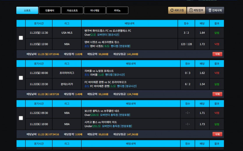 일단 저는 스포츠랑 슬롯을 주로 이용하는데요 너무 좋습니다! 스포츠를 걸 수 있는 방법도 여러 가지!