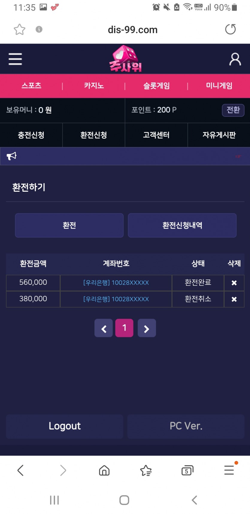 충전 3번하고 환전 한번 받아봤는데 충환도 빠르구요♥ 빠른 충환전이 유저입장에서 정말 중요하잖아요?ㅎㅎ